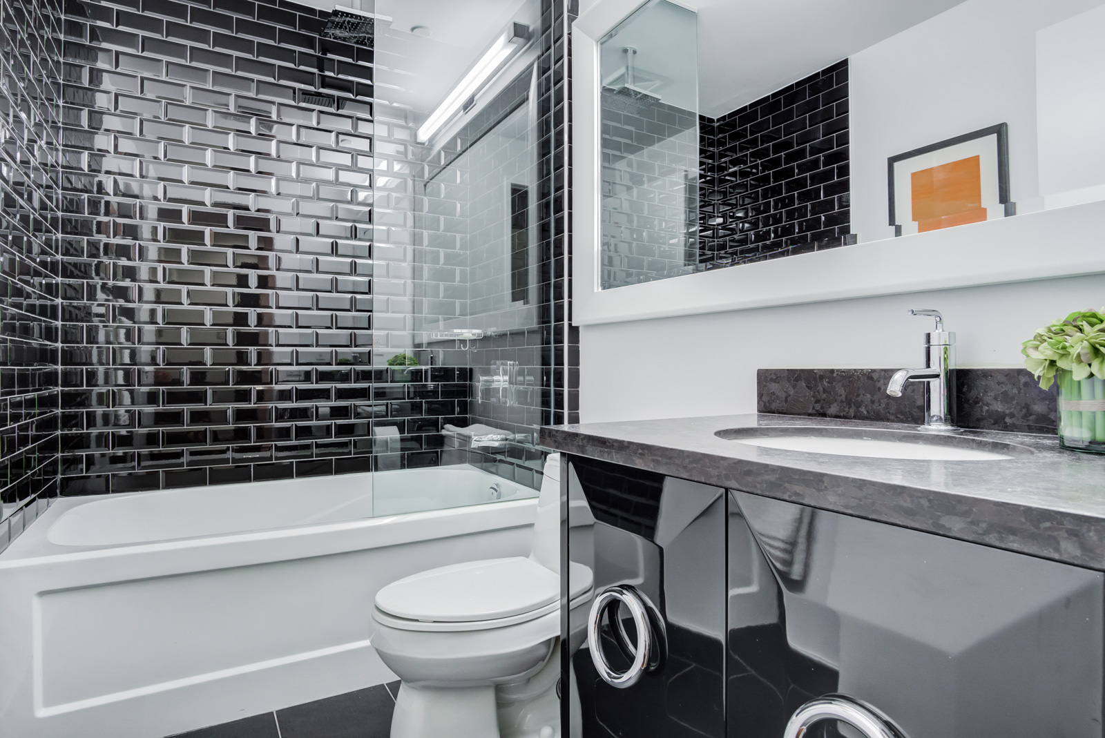 Guest bathroom with granite vanity counter