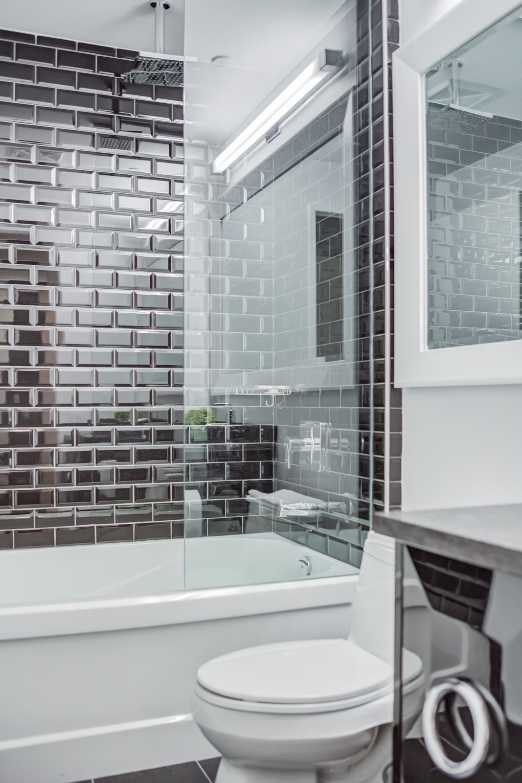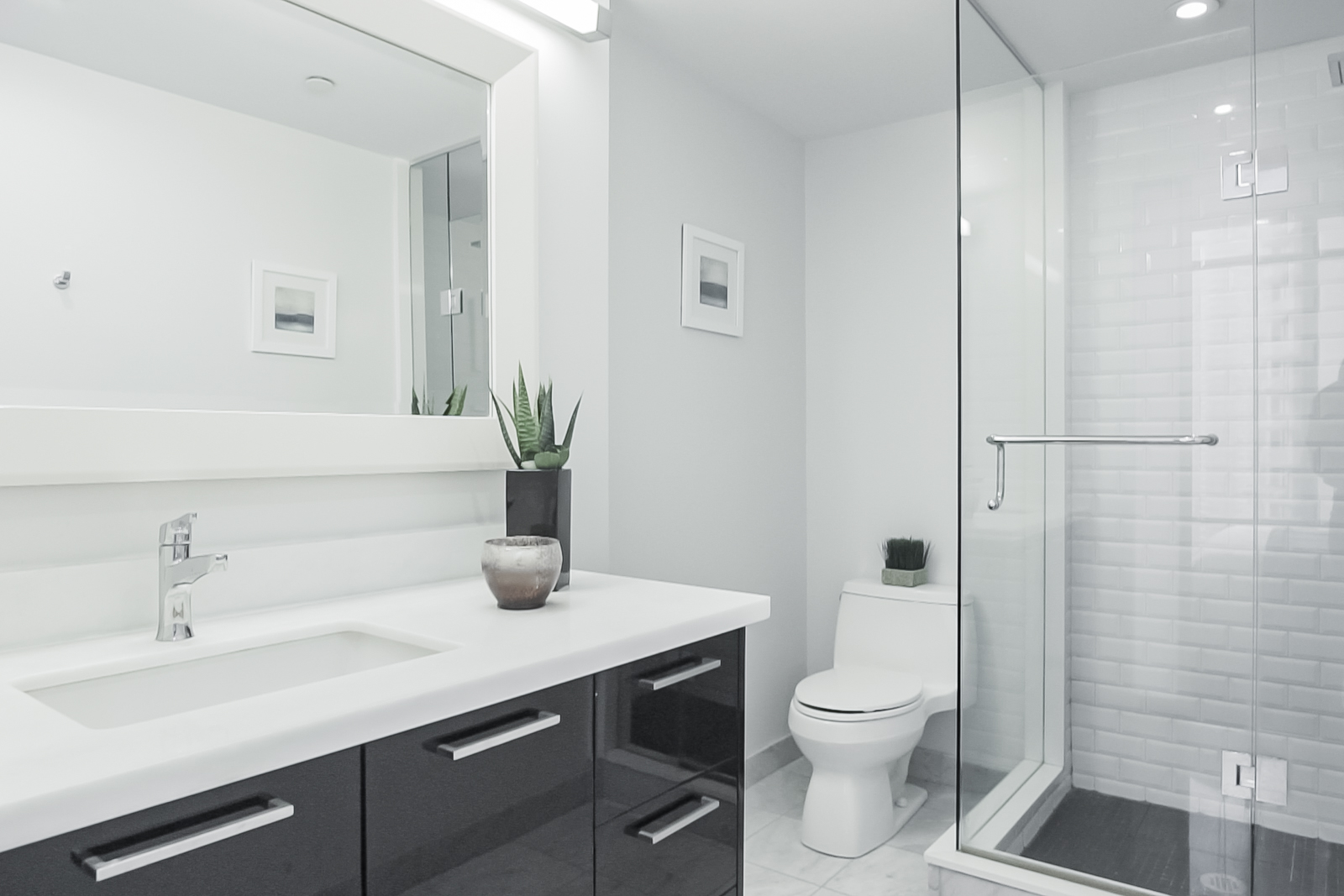 Master ensuite bathroom with marble vanity counters