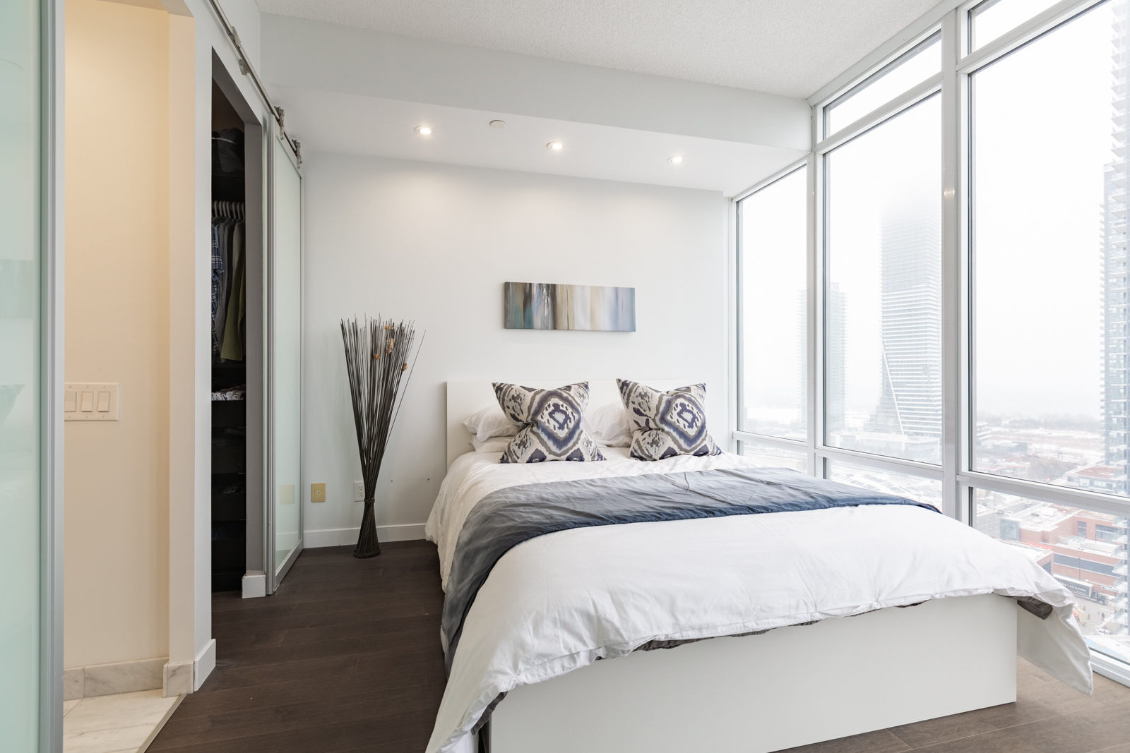 Large master bedroom with walk-in closet & stunning lake views
