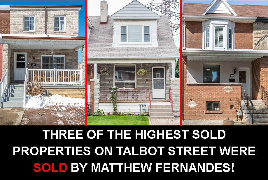 THE THREE HIGHEST SOLD PROPERTIES ON TALBOT ST. SOLD WITH MATTHEW FERNANDES